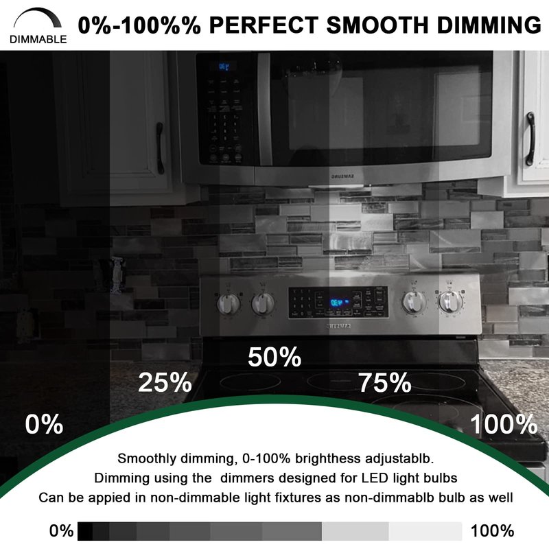 - EXCELLENT PERFORMANCE: Instant on without delay, no flicker, no buzzing sound. 6000k daylight white with CRI 85, creating a clean, pleasant and bright atmosphere for you, makes your food look yummy when cooking.