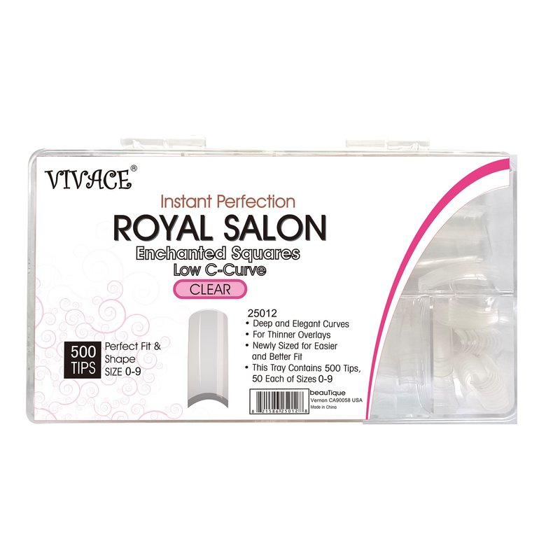 - Royal Salon Design: Vivace Clear Royal Salon nails come with natural curves to help make them seamless on your finger tips. But filing or cliping the acrylic nail to your desired shape is very easy to do. Our nails will hold its shape and vibrant decorations you apply to the nail very well, and maintain its fabulous looks.