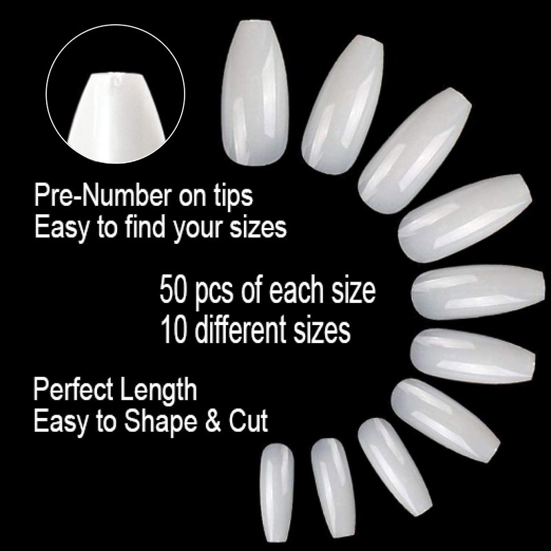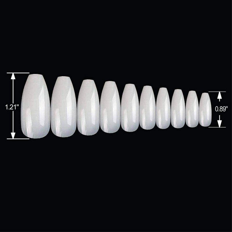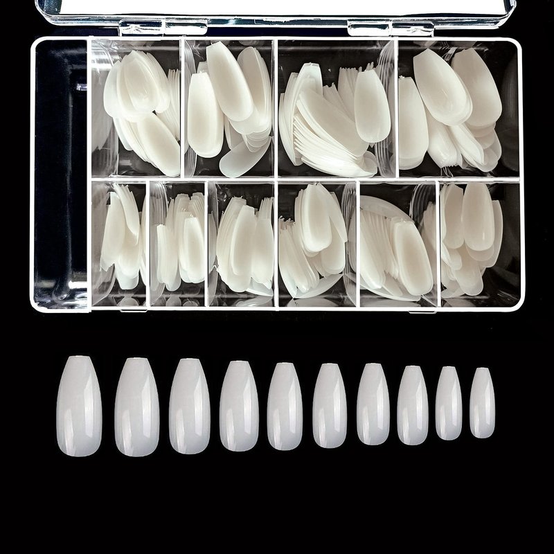 - Various Sizes: Vivace Natural Coffin nails come in 10 different sizes with 50acrylic nails each in a segmented plastic case, so you can use and store them with ease. Various size options will easily fit every size and shape of finger nails, and our nails are easily trimable to fit the desired length for all kind of occasions.