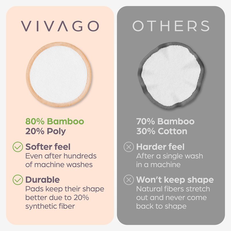 VIVAGO Reusable Cotton Rounds for Face - (20 Pack) Soft Reusable Makeup Remover Pads with Washable Drawstring Laundry Bag & Bamboo Holder - All Skin Type Skincare Set Facial Cleaning Cloth