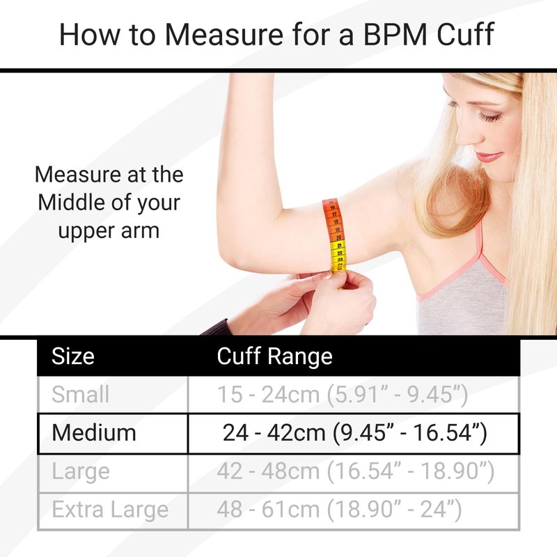 - SELF-ADJUSTING CUFF: Get accurate readings every time with the adjustable arm cuff, equipped with an integrated D-ring and designed to fit a range of arm circumferences from 8.66” to 16.54”. Note: this particular variation is for our medium size; please measure correctly and choose the correct size based on our sizing chart.