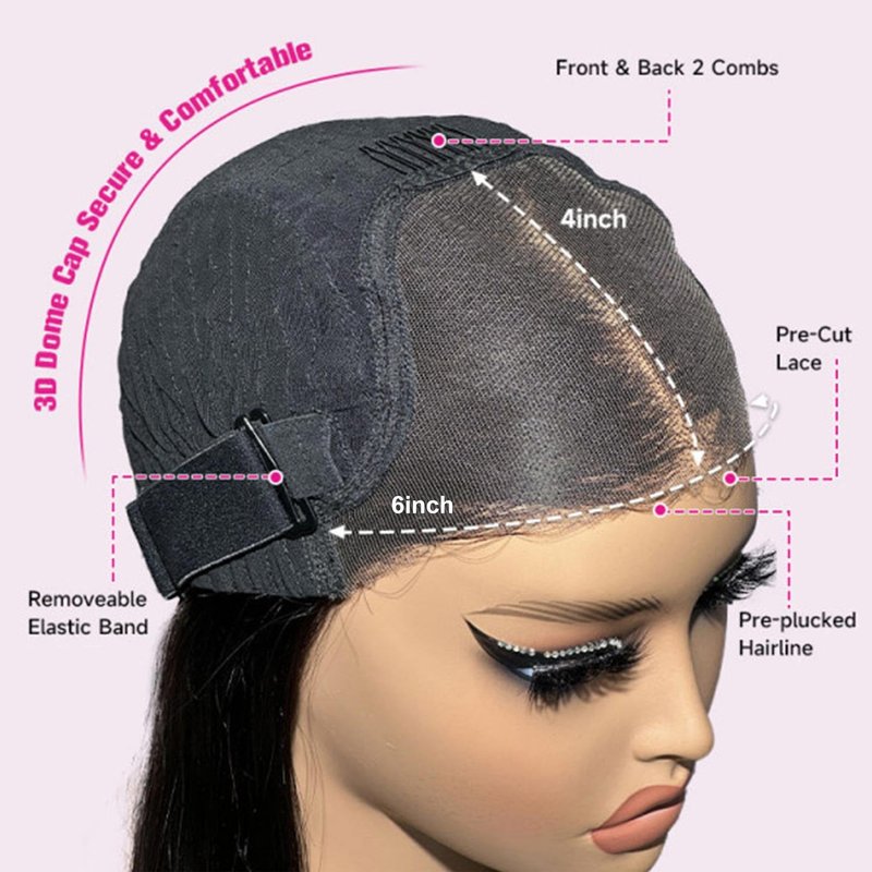 - Wear & Go Glueless Wigs: 6x4 Pre Cut Closure wigs human hair, Large lace size maintains stability while allows versatile hairstyle. Real invisible lace, blends perfectly into skin. Giving you the most Natural Scalp.