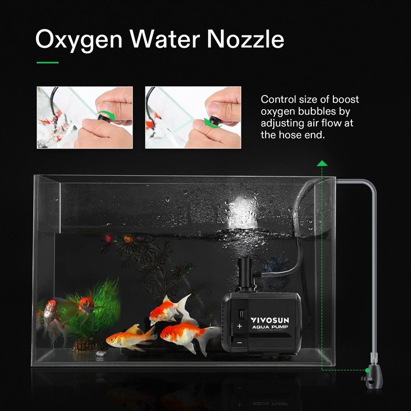 VIVOSUN 130GPH Submersible Pump(500L/H, 6W), Ultra Quiet Water Pump with 2.6ft High Lift, Fountain Pump with 5ft Power Cord, 2 Nozzles for Fish Tank, Pond, Aquarium, Statuary, Hydroponics