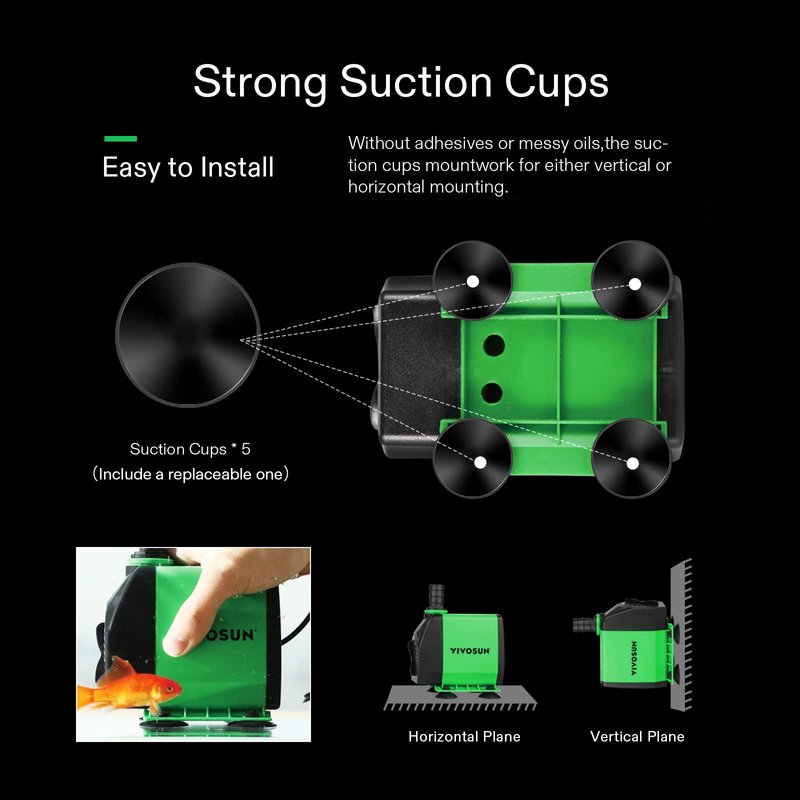 - Many Possible Placement Positions: Place the pump flat on its base, stick it on an angled or vertical surface, and manually rotate it into any position you need