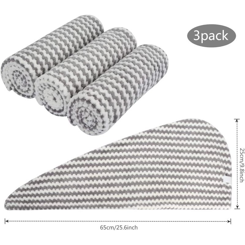 - 100% Microfiber, high quality hair towel, hair dry turban, head turban, extremely soft to the touch, super absorbent and fast drying. 3 packs, essential in the home.