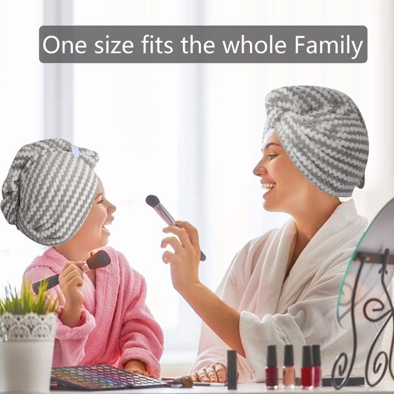 - Unique design - There is a unique elastic band to secure the hair towel turban wrap, so it doesn't sliding down, no matter how long or short your hair is, more or less. It means that you can Dressing, make-up, doing housework, checking mail, all while drying hair