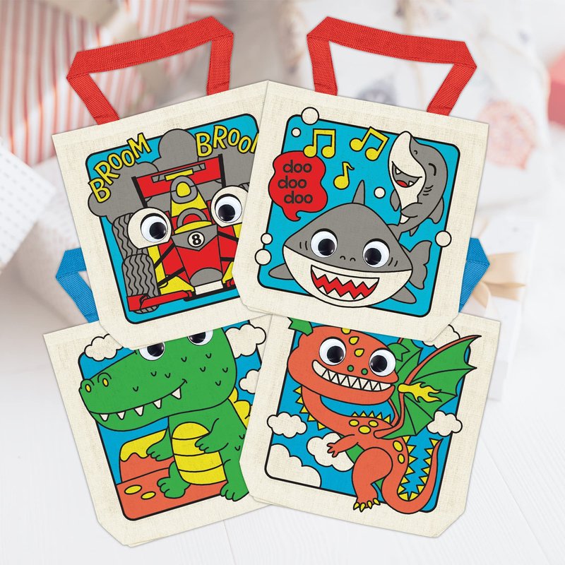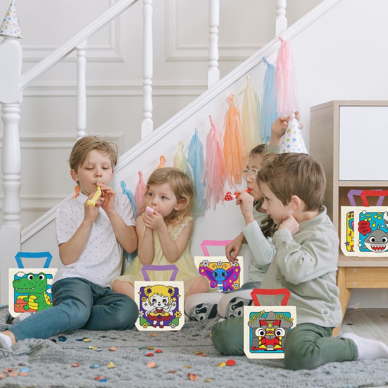 VKPI 8 Pieces Kids Coloring Goodie Bags, Reusable Canvas Bag, Cute Art Party Favors, Color Your Own Bags for DIY Painting Birthday Carnival Celebration, Party Supplies Gift, Boys