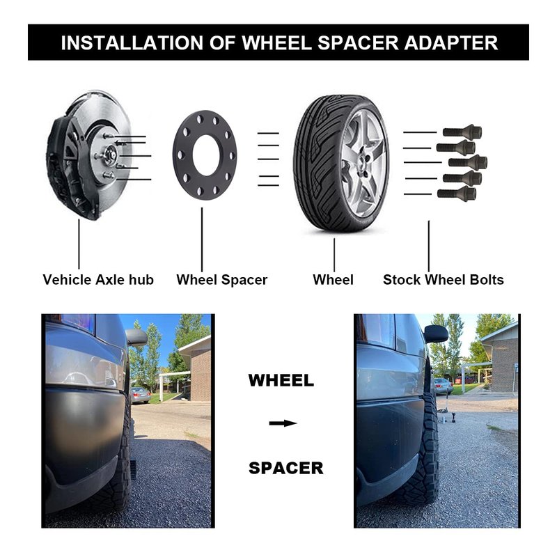 - 【Benefits】These wheel spacers are designed to move the wheel further out from the hub, give your vehicle a more aggressive stance, allow for better handling characteristics & increases driving stability; Mount larger wheel or tires, eliminate wheel/tire rubbing instantly.