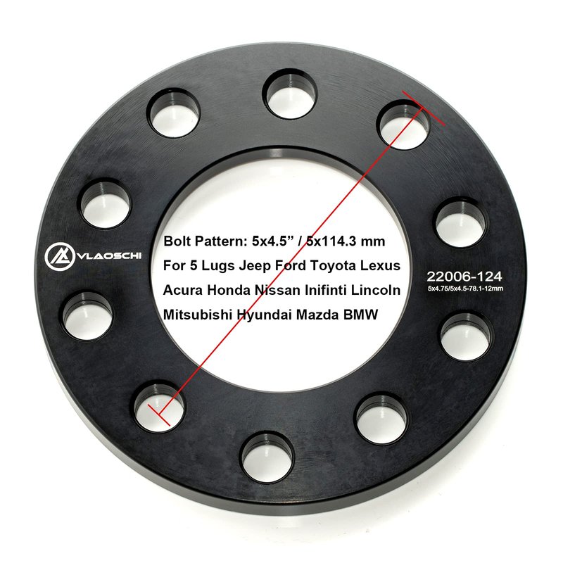 - 【Specifications】NOT ADAPTER, only widen the wheels, do not change bolt pattern. Pack of 4 Wheel Spacers. Thickness: 1/4" or 6mm | Vehicle Bolt Pattern: 5x4.5" 5x4.75" 5x114.3mm 5x120.65mm | Wheel Bolt Pattern: 5x4.5" 5x4.75" 5x114.3mm 5x120.65mm | Center Bore: 78.1mm.