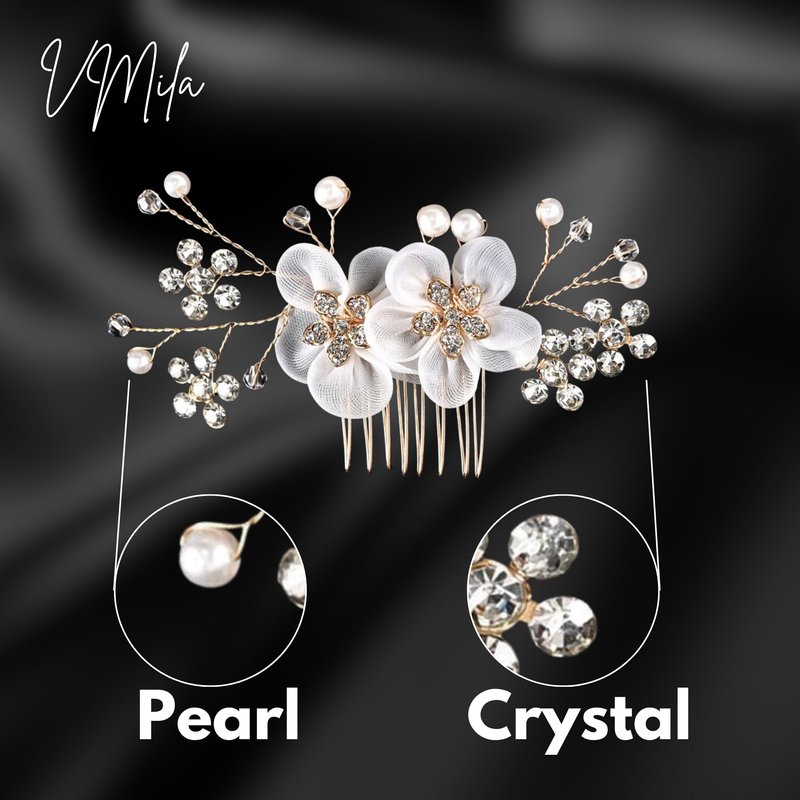 - Pearlescent Perfection: Elevate your bridal elegance with our Pearl Bridal Hair Accessories. Immerse yourself in the timeless allure of pearls and floral accents, creating a captivating and sophisticated look for your special day.