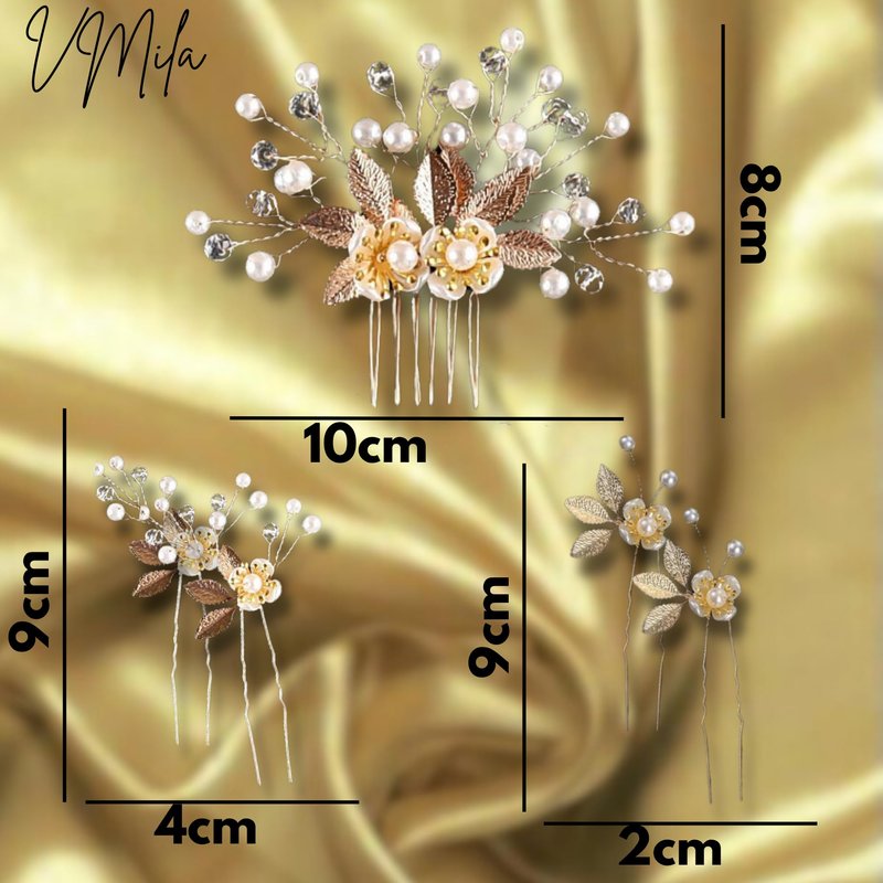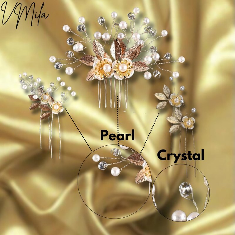- Pearlescent Perfection: Elevate your bridal elegance with our Pearl Bridal Hair Accessories. Immerse yourself in the timeless allure of pearls and floral accents, creating a captivating and sophisticated look for your special day.