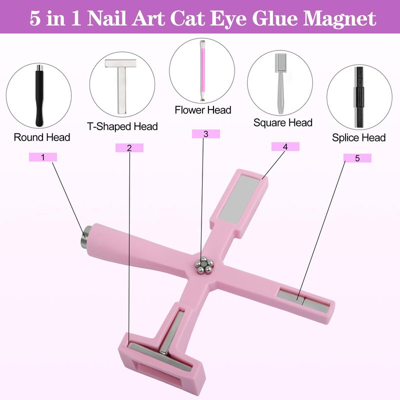 Introducing the 5-in-1 ultimate tool for creating stunning cat eye nail art - the Magnetic Nail Polish Wand! This set includes 1 Multi-Function strong magnetic force wand that is perfect for achieving the perfect cat eye effect. This cat eye magnet for nails is a must-have for any nail art enthusiast looking to create unique and eye-catching designs. Use it with cat eye gel polish or any other magnetic nail polish to create stunning and professional-looking nail art. The wand is easy to use and the magnetic force is strong enough to create perfect lines every time. Get your hands on this cat eye tool today and take your nail art to the next level!