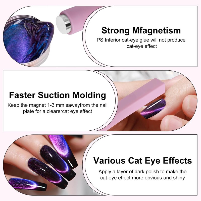 - QUICK AND EFFICIENT TOOL - Nail Polish Magnet easily attracts particles from magnetic gel nail polish to make a variety of professional nail art patterns on the tips of your nails. The super strong magnetic force allows you to get the cat eye effect easily in 5-10 seconds. However, this tool must be used with Cat Eye Polish.