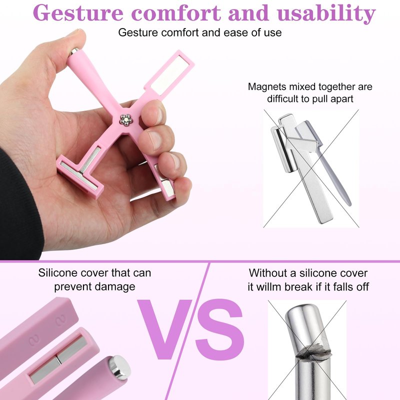 - 5 in 1 CAT EYE MAGNET - Qty: 1pcs | Color: Pink | Size: 4.21 inches in length, 4.05 inches in Width | Magnetic force: Round head can picks up 2.21 pounds of weights | Design: 5-in-1 Multi-functional with a Silicone Case to Prevent Breakage, Saving You Time and Money.