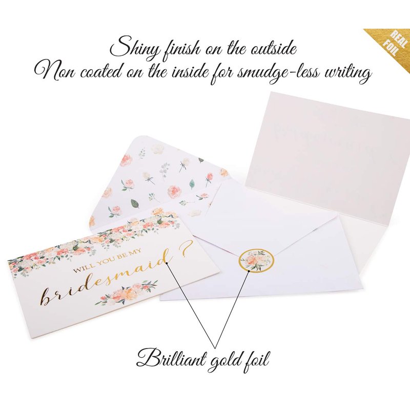 - π EXTRA DETAILS: Each bridesmaid proposal card includes a cute envelope with floral motif and a brilliant gold foil sticker to seal the envelope.