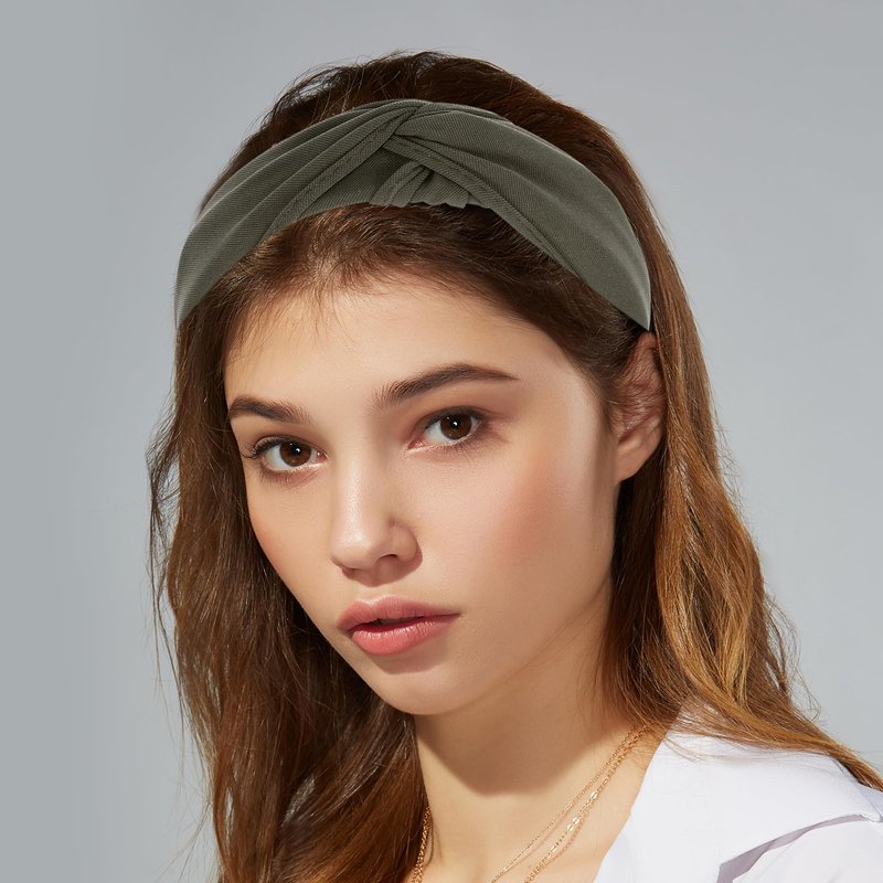 VOCOSTE Knotted Headbands for Women, Top Knot Headband, Cloth Cross Knot Headband, Wide Turban Headband, Womens Knotted Headbands, Army Green Headband, Hair Accessories for Women