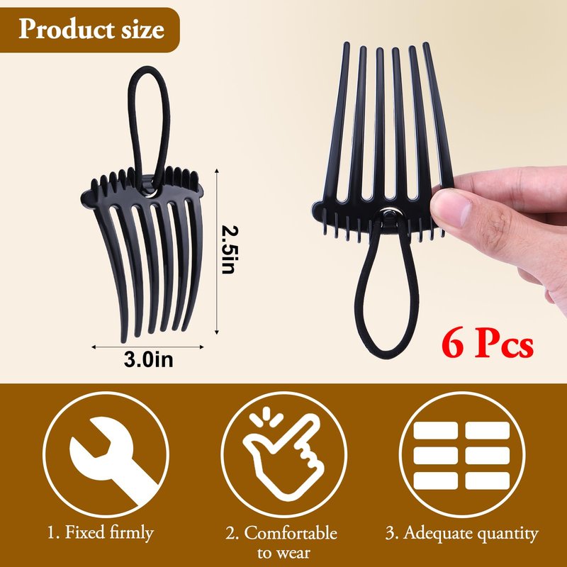 Vodolo Bandette Comb with Elastic Band,6 PCS Hair Accessory for Easy and Chic Hairstyles,Ponytail Bump it UP Volume Inserts Combs, Hair Combs for Thick Hair