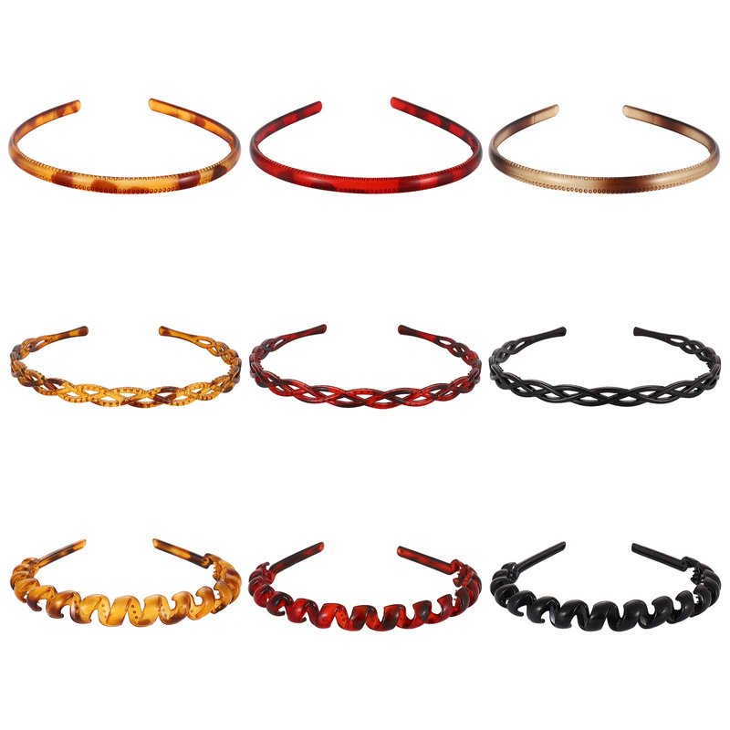 - Brightly colored plastic hair bands are a perfect accessory for women and younger teen girls,A set of 9 pieces skinny headband in three different styles and colors in tortoiseshell brown,leopard,black and wine red.