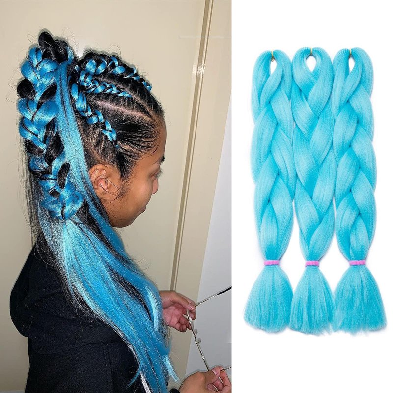 VOKEYLA Blue Braiding Hair Braid in Hair Extensions for Twist Braid 3 Pack Braiding Hair High Temperature Synthetic Fiber Light Blue Jumbo Braid for Women (Color:Azure Blue)