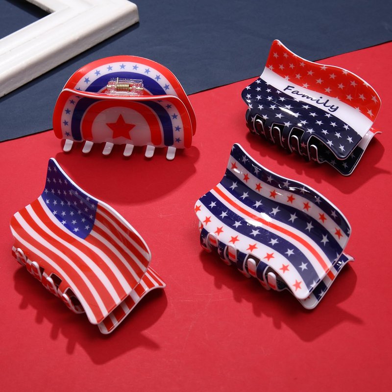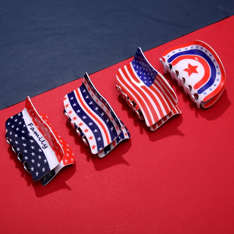 - Celebrate the 4th of July,Memorial Day,Election Day andVeteran's Day with this red white and blue American flag hair claw clips.A set of 4 pack 4th of july claw clips which features flag and rainbow designed acetate hair claw printed with 4th of July stars and stripes patterns,beautifully captures the essence of patriotism.Show off your patriotic spirit this Fourth of July with these lovely 4th of July stars and stripes hair clips!