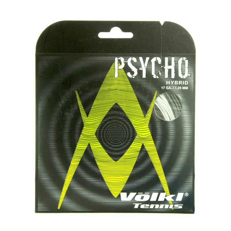 - Psycho Hybrid combines Power Fiber II, our most popular multifilament string with Cyclone, our exclusive ten-sided co-polymer string. Using Power Fiber II in the mains creates exceptional feel and shock reduction while the Cyclone crosses improve spin potential.