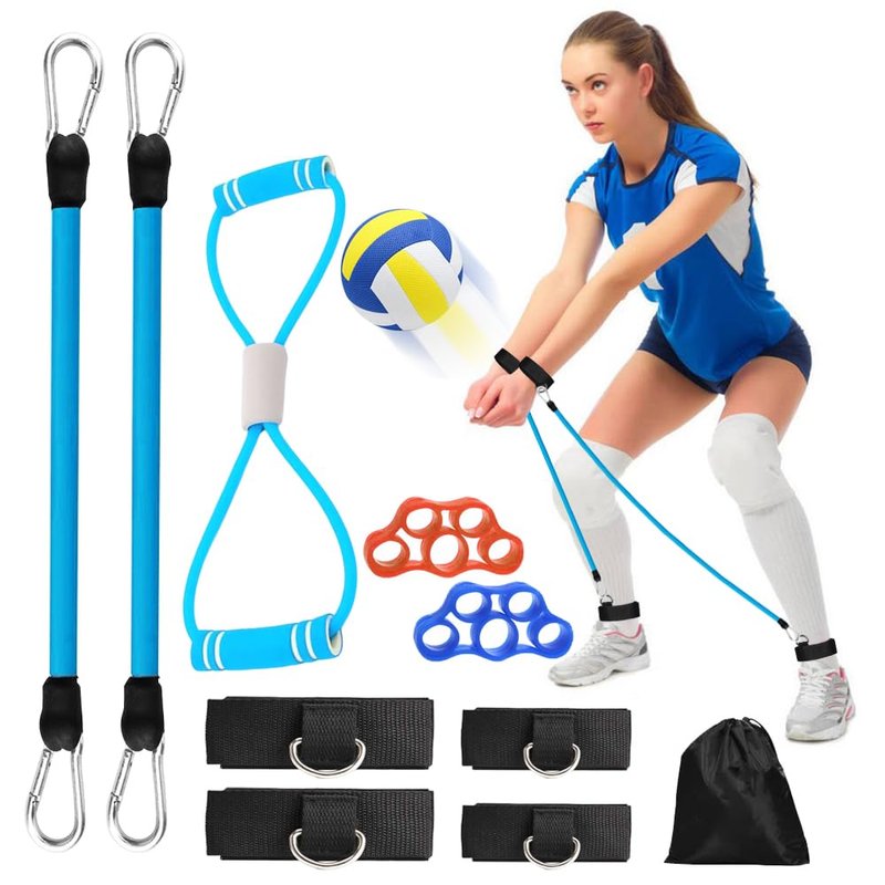 - Complete Volleyball Equipment Set: This comprehensive set includes 2 wrist belts, 2 ankle belts, 2 elastic ropes, 1 Figure 8 Resistance Band, and 1 storage bag for convenient transportation and organization