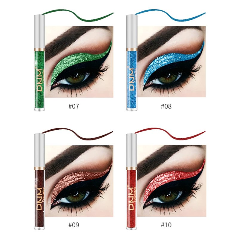 VOLLUCK 10 Colors Glitter Eyeliner liquid, Metallic Shimmer Glitter Eyeshadow, Long Lasting Waterproof Sparkling Eyeliner Eye Shadow Set for Party Festival Makeup