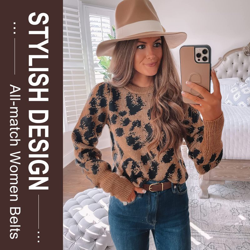 - Basic color for choice (black/brown/white/Khaki/Leopard). Approx. Total length: S: 39"; M: 43"; L: 47"; XL: 51"; Approx. Belt width: 28mm / 1.1". Give your outfit a designer look with fashion women belts.
