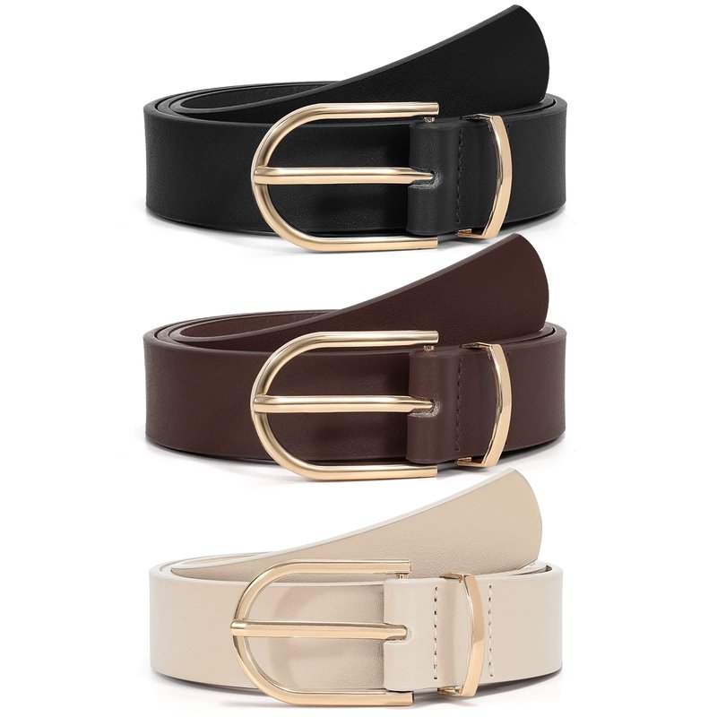 - A simple leather belt is essential to every women's / girls’ lineup. These belts for jeans have been made of faux leather and fastens with a gold buckle and works well for both casual and more dressed-up occasions.