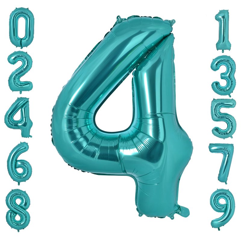 Vonokee 40 Inch Teal Blue Giant Number Balloons 4, Jumbo Digital Foil Mylar Balloon for Birthday Party Wedding Anniversary Celebration Decoration
