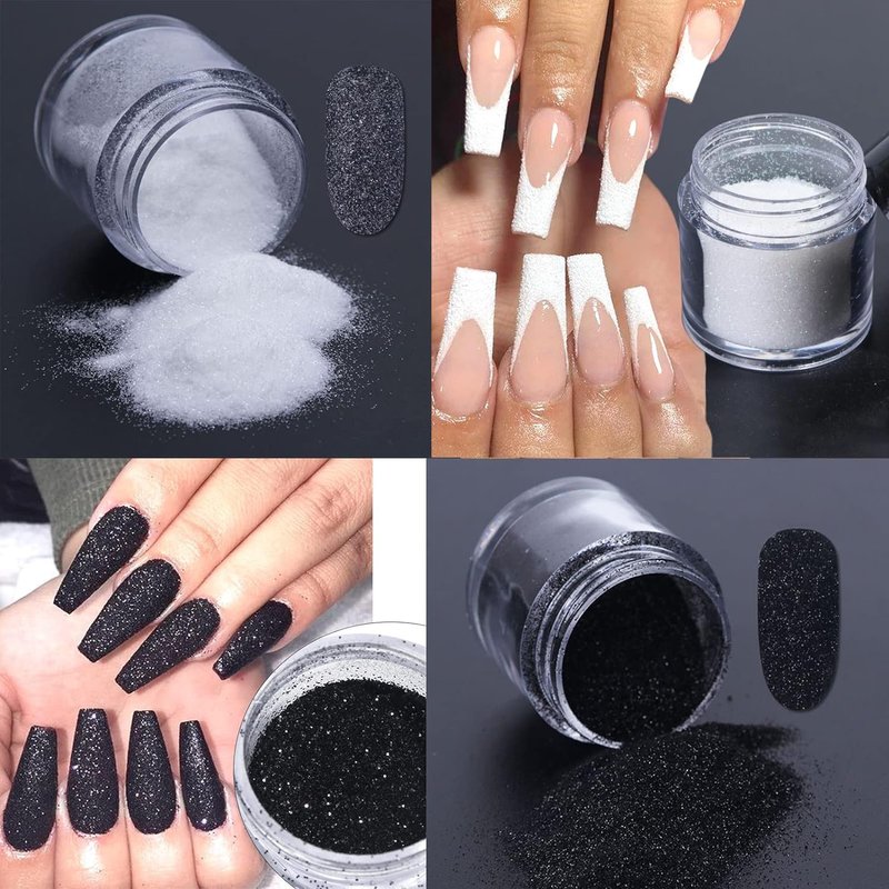 • YOU WILL RECEIVE :2 Bottles Black White dip powder set fine glitter for nails sugar effect, this is perfectly designed for sugar and french tip nail glitter for nail art effect that gives nails a special look to help you stand out and impress like shiny snow white nail glitter powder.