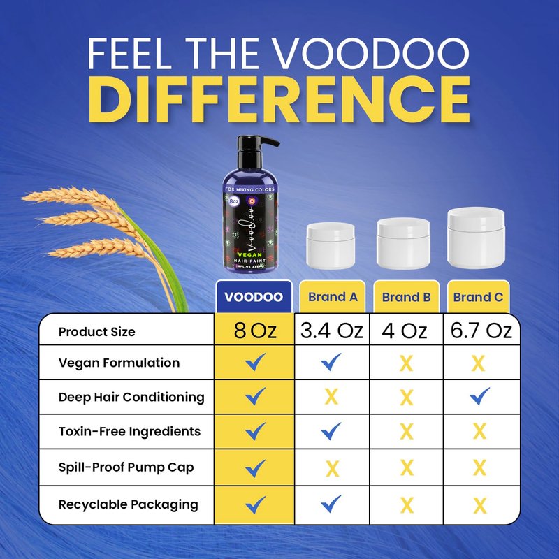 VOODOO Blue Hair Paint (Serenity) 8 Oz | Vegan & Cruelty-Free Blue Hair Dye | Ammonia, Sulfate & Paraben-Free | Vivid & Bright Intermixable Temporary Hair Dye | DIY Semi Permanent Hair Color (8 Oz)