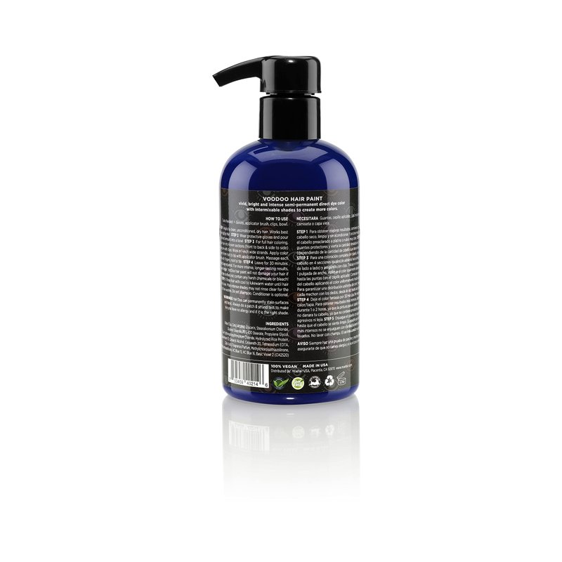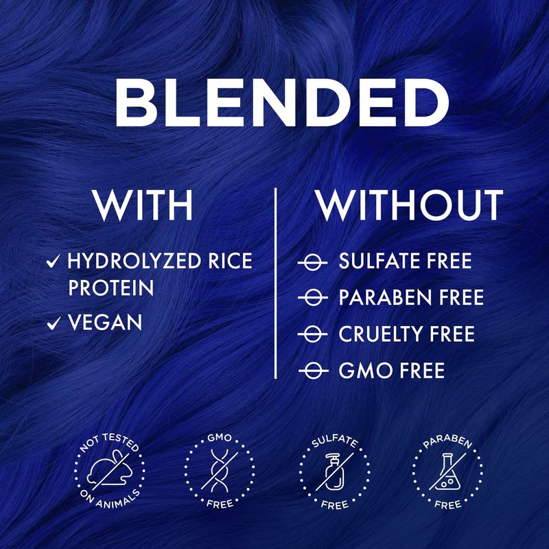 - ✔️ CRUELTY-FREE AND VEGAN FORMULA — The blue semi-permanent hair color is 100% cruelty-free and gentle on the furry friends. The vegan formula makes use of natural plant extracts that enhances the shine, boosts hair quality, and prevents hair damage. With its inclusive and safe-formulation, it does not damage hair strands. The hair paint is known for its clean ingredients and is free of sulfate, paraben, and ammonia. With its enriched oils and vitamins, it nourishes the colored blue hair