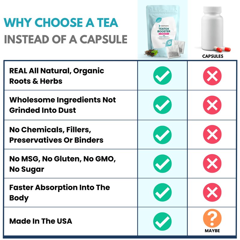 - Gentle Cleansing - TeaTox Booster contains organic Senna leaf that helps stimulate and encourage normal bowel movements.