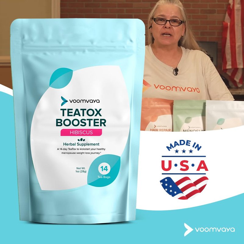 VoomVaya TeaTox Booster Senna Tea - 14-Day Detox Tea for Bloating Relief, Detox Cleanse, Mood Boost - Hibiscus Flavor