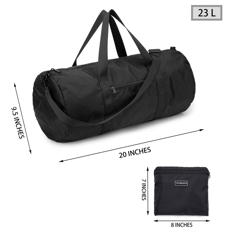 Vorspack Small Duffel Bag 20 Inches Foldable Gym Bag for Men Women Duffle Bag Lightweight with Inner Pocket for Travel Sports - Black