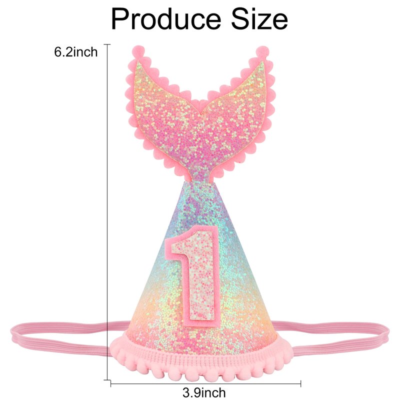 Vovii 1 year old Mermaid Tail Birthday Hat for Baby Girl Pink Sparkle Sequined Mermaid Tail Headband Princess Birthday Party Supplies