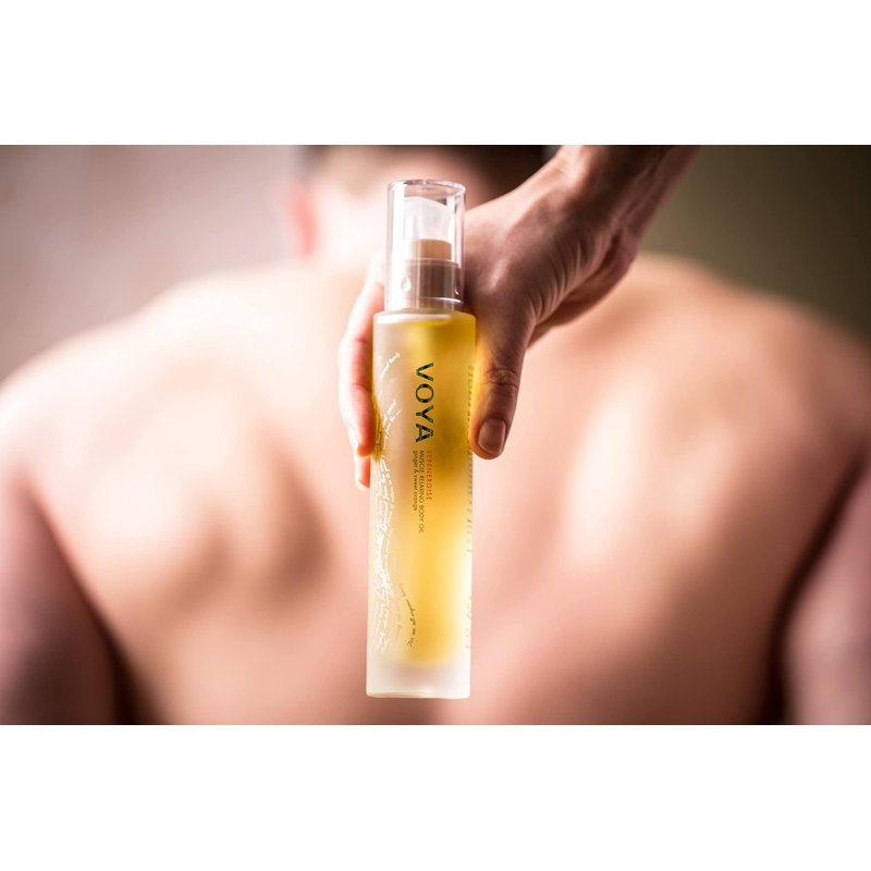 99% Certified Organic Ingredients VOYA's muscle healing and fatigue-busting body oil is blended with Evening Primrose and Rosehip oils for their powerful antioxidant qualities. While extracts of Laminaria Digitata seaweed, Bergamot, Ginger, and May Chang work in synergy to relax the muscles, making this the perfect organic tonic to deeply soothe, nourish and hydrate your skin.