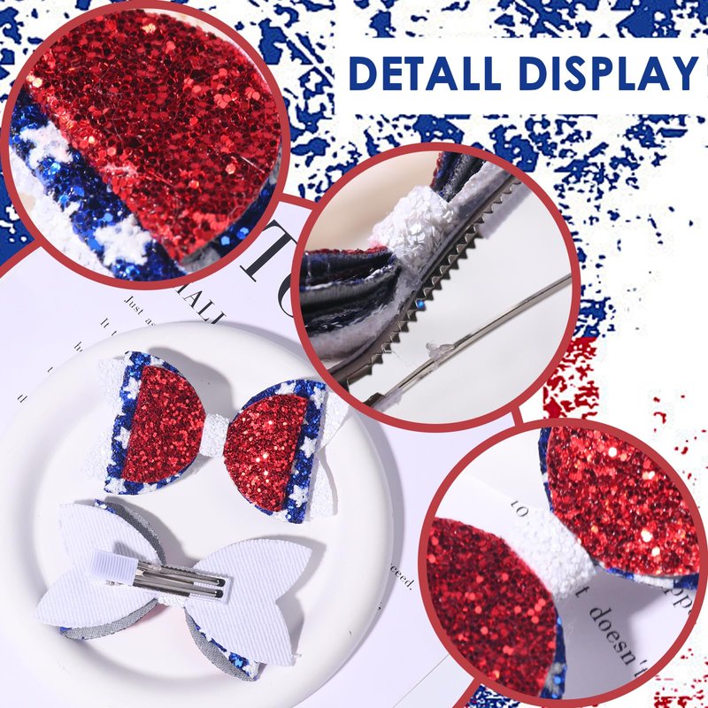 - 【Unique design】 : The Independence Day hair clip features a stylish sequin bow in red, white and blue, make you more eye-catching and attractive. Unique designs make it easy to DIY holiday outfits and hairstyles that will make you stand out in a parade or Fourth of July event.