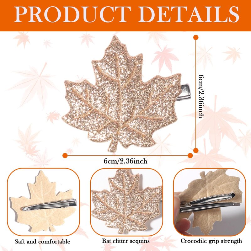 - Unique design : This maple leaf hair clip is designed in the shape of autumn maple leaf, sequin decoration, like a real maple leaf, wearing it is like putting autumn on your head, especially unique, with a strong autumn breath, you will be praised by others!