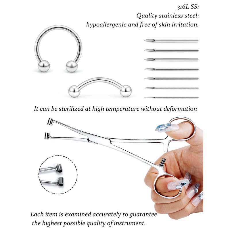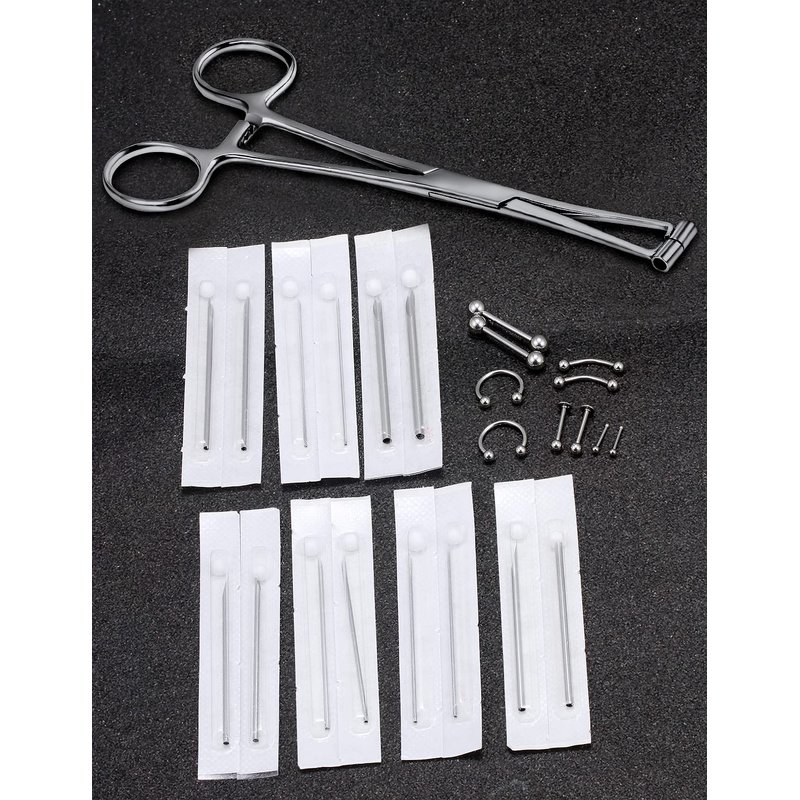 - [ITEM CONTAIN]: You Will Receive 1 Pieces Forceps Piercing Clamps Piercing Tools with 14 Pieces Piercing Needles and 10 Pieces Piercing Jewelry, All Of Them Are Beautiful And Elegant, Multiple Choices For Meeting Your Various Needs.