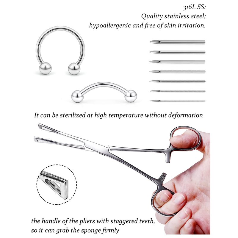 - [ITEM CONTAIN]: You Will Receive 1 Pieces Forceps Piercing Clamps Piercing Tools with 14 Pieces Piercing Needles and 10 Pieces Piercing Jewelry, All Of Them Are Beautiful And Elegant, Multiple Choices For Meeting Your Various Needs.