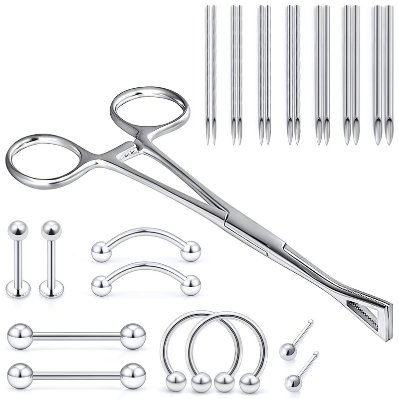 - [SUITABLE FOR USE]: These Body Jewelry Piercing Kit Tools Can Be Used For Belly Button Rings, Tongue Rings, Septum Rings, Nose Rings Piercing, Lip Rings, Eyebrow Rings, Ear Piercing, Cartilage Tragus Helix Rook Conch Daith Earrings Piercing Jewelry