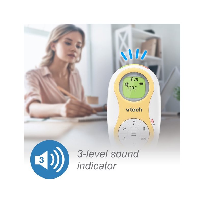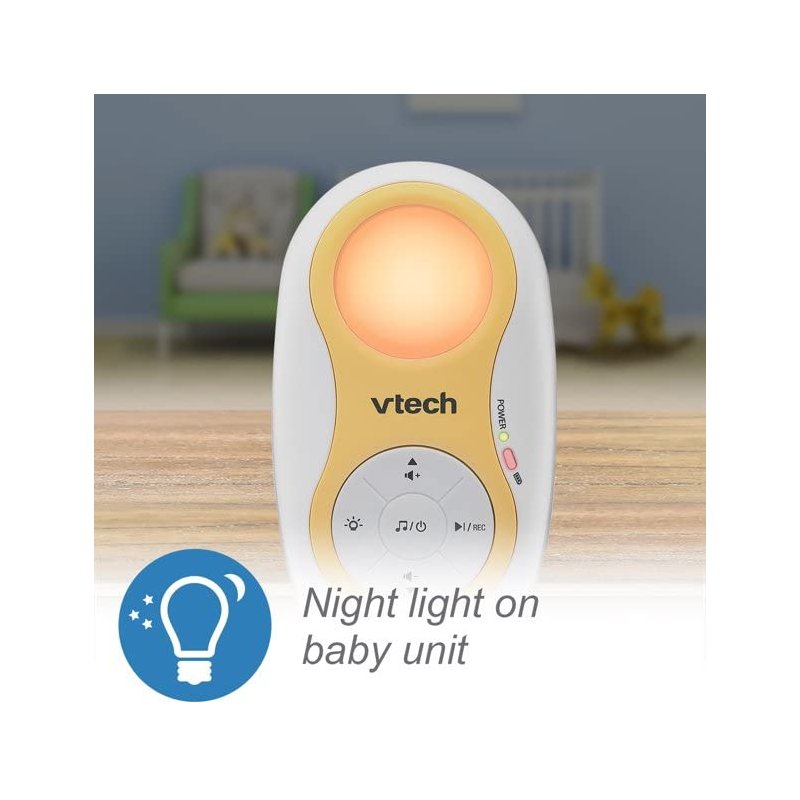 VTech Enhanced Range Digital Audio Baby Monitor with Night Light, DM1215. Big home? No problem. The VTech DM1215 Enhanced Range Digital Audio Baby Monitor with Night Light, lets you hear baby clearly, even from the other end of your house, or in a large backyard. Thanks to the enhanced range on this long-range baby monitor, you can be up to 1,500 feet away and still know how your little one is doing. Also, both the parent and baby unit includes a rechargeable battery, so you can monitor your baby anywhere! And since the baby unit doubles as a gentle night light, you can create a soothing glow for baby to fall asleep to. Lullabies and soothing sounds play right from the baby unit, giving you another soothing option.