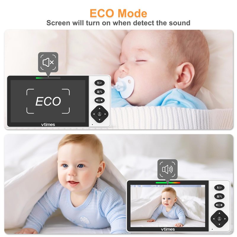 - 【ECO Mode Feature】This is a baby monitor with camera and audio, which includes an ECO mode that puts the monitor to sleep when it's quiet, saving battery life. When any sound is detected, the monitor instantly wakes up. This ensures efficient power use and peace of mind.