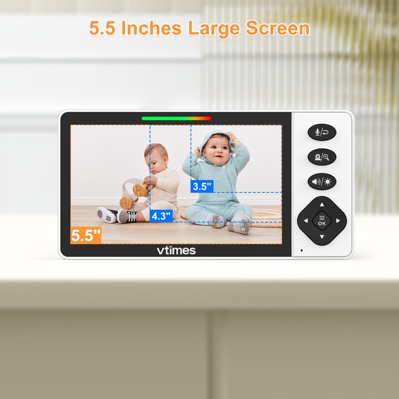 VTimes Baby Monitor with Camera and Audio, 5.5" 720P HD Screen Video Baby Monitor No WiFi VOX Mode Pan-Tilt-Zoom Alarm and 1000ft Range, Night Vision Night Light Lullaby, Ideal for Baby/Elderly/Pet