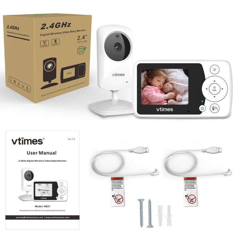 VTimes Video Baby Monitor with Camera and Audio No WiFi 2.4" Screen, Portable Baby Camera, Baby Camera Monitor Night Vision, 1000ft Range, 2X Zoom, Ideal for Baby Elderly Pet (NO Charging Plug)
