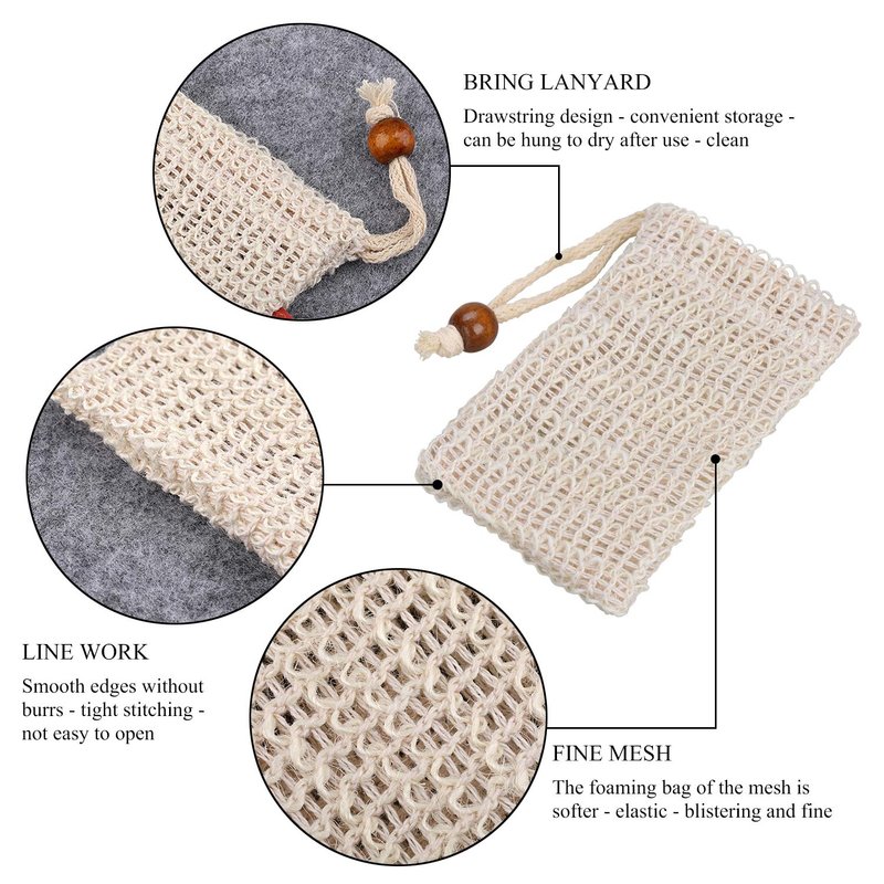 Vtrem Sisal Soap Saver Bag: 5 Pcs Natural Soap Bag Bar Soap Pouch for Shower Exfoliating Soft Mesh Net Soap Saver Pouch with Drawstring for Foaming and Drying
