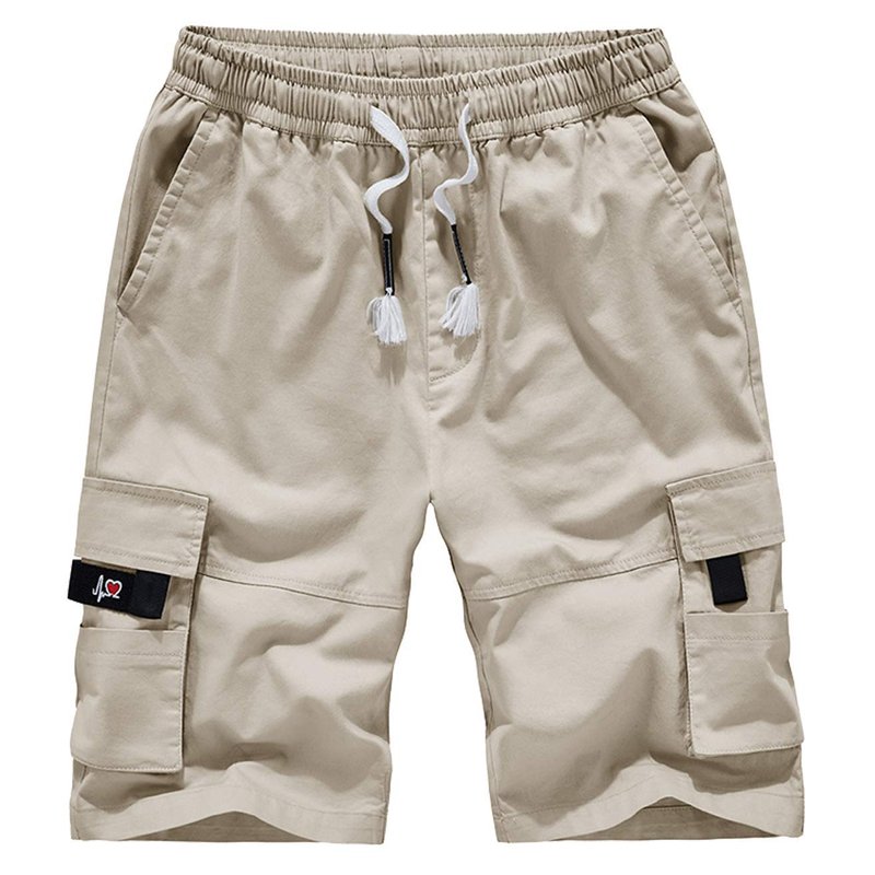 VtuAOL Men's Cargo Shorts Elastic Waist Casual Cotton Shorts with Multi Pockets Beige Asian 6XL/US 38