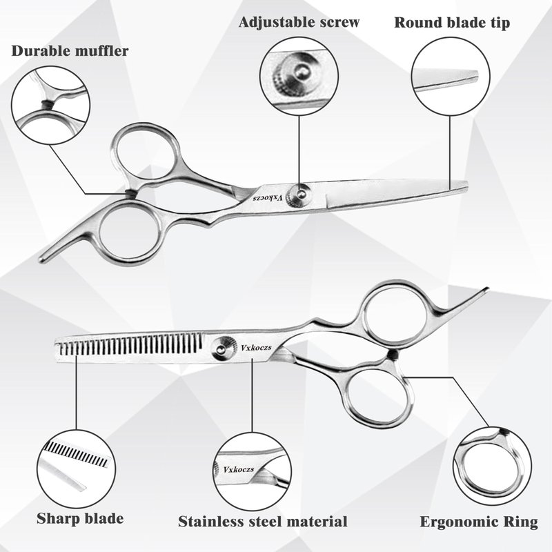 VXKOCZS Professional Hair Scissors Set include Barber Scissors and Thinning Shears,hair cutting scissors, ergonomic blades, hair cutting shears for men, women, children and pets (6 PCS)